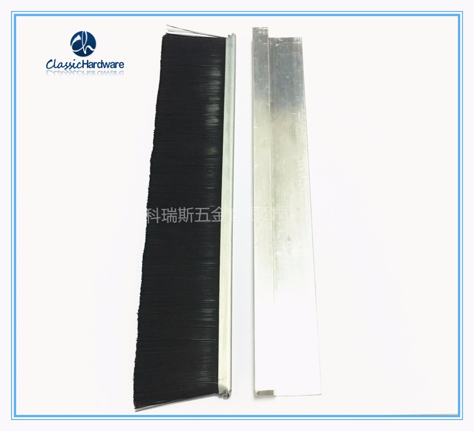 工業(yè)門、卷簾門、快速門一般使用H型(180°)或者F型(90°)鋁條配套毛刷,毛刷的高度常用規(guī)格是35mm,50mm,100mm,毛料有PP,PA。